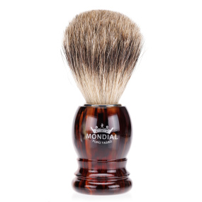 Помазок для бритья Mondial, пластик, ворс барсука, рукоять - цвет черепаха