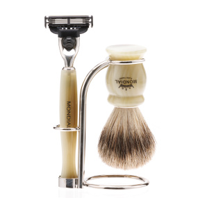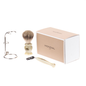Бритвенный набор Mondial: классический Т-образный станок, помазок, подставка; слоновая кость