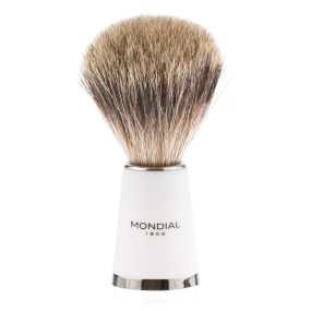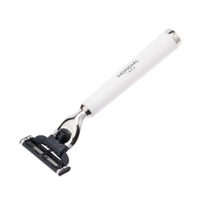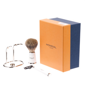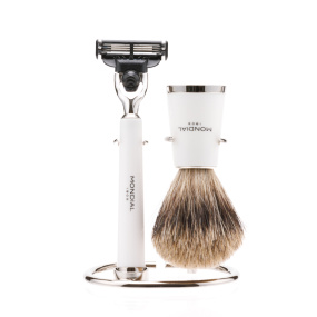 Бритвенный набор Mondial: станок, помазок, подставка; белая смола