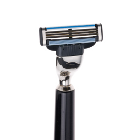 Бритвенный набор MONDIAL: станок MACH3, помазок, подставка, смола в черном цвете/никелированная латунь, в картонной коробке