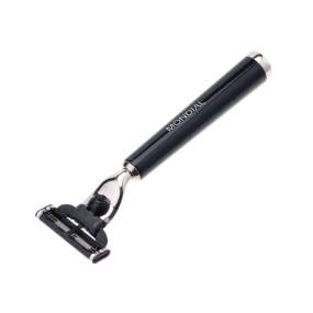 Бритвенный набор Mondial: классический Т-образный станок, помазок, подставка; чёрная смола