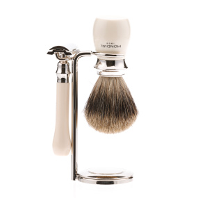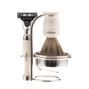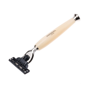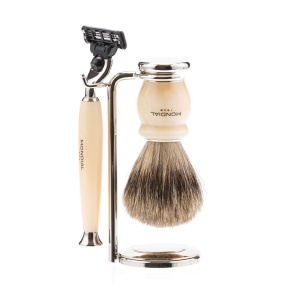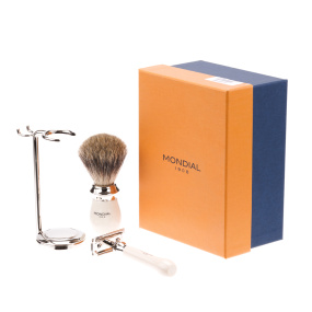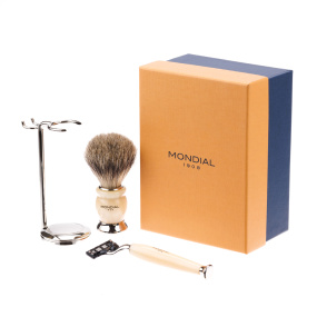 Бритвенный набор Mondial: классический Т-образный станок, помазок, подставка; слоновая кость
