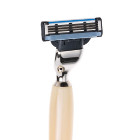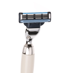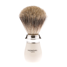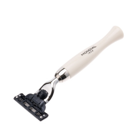 Бритвенный набор Mondial: станок, помазок, подставка; цвет слоновая кость