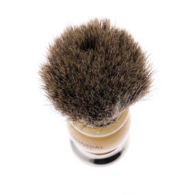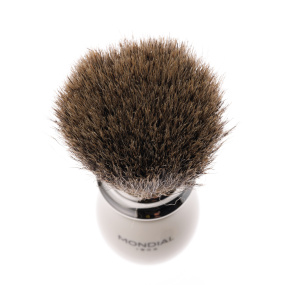 Бритвенный набор Mondial, цвет слоновой кости: станок, рукоять из латуни с никелированным покрытием и каучука; помазок, ворс барсука; подставка и чаша, латунь с никелированным покрытием