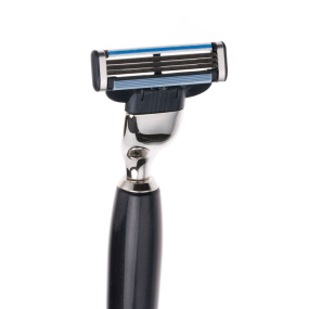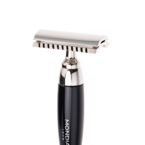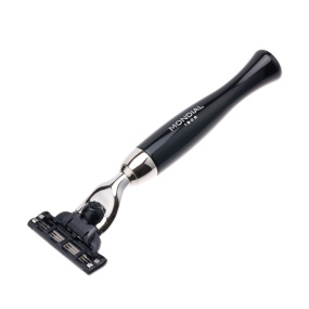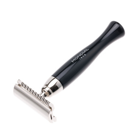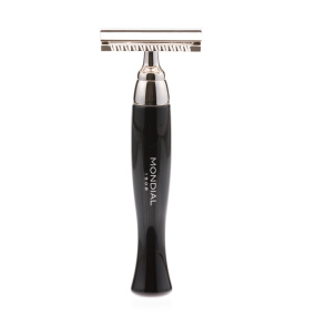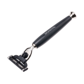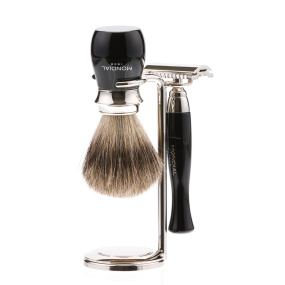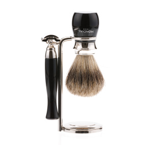 Бритвенный набор Mondial: классический Т-образный станок, помазок, подставка; чёрная смола