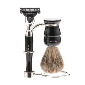Бритвенный набор Mondial: станок MACH3, помазок, подставка; бриар