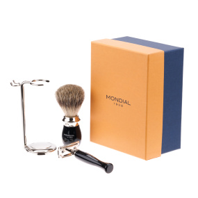 Бритвенный набор Mondial: станок, помазок, подставка; чёрный