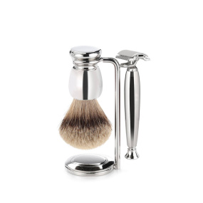 Бритвенный набор Mondial: станок, помазок, подставка; отполированный никель