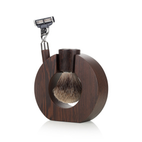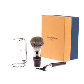 Бритвенный набор Mondial: станок, помазок, подставка; дерево Венге