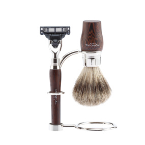 Бритвенный набор Mondial: станок MACH3, помазок, подставка; венге