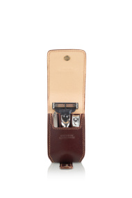 Бритвенный дорожный мини-набор Mondial : в кожаном чехле: станок, пинцет, книпсер; серебристый