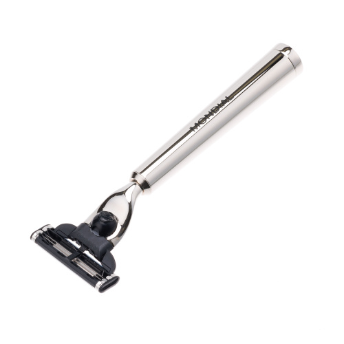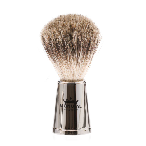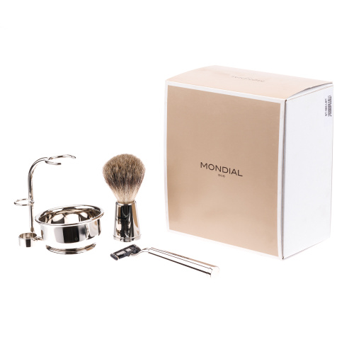 Набор из коллекции VESPUCCI с помазком Tasso Tec / Best Badger из натурального барсучьего волоса, станок Gillette Mach 3 Turbо и чаша. Материал - отполированный никель