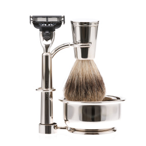 Набор из коллекции BEETHOWEN с помазком Tasso I / Super Badger из натурального превосходного качества барсучьего волоса, классический Т-образный станок. Материал - отполированный никель