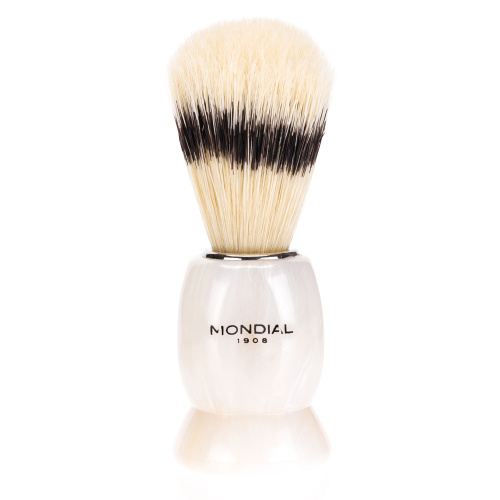 Размер помазка Mondial M5093/7 составляет 11 см – оптимальный параметр для удобного использования. Кисть помазка изготовлена из натурального свиного ворса, весьма жесткого и упругого материала. Ее использование понравится тем мужчинам, которые не любят излишней мягкости барсучьего ворса из которого производятся другие модели помазков.